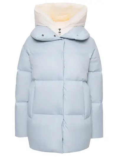 -Модель прямого кроя с длинными рукавами, прорезными карманами, широким воротником, контрастной вставкой на молнии с объемным капюшоном, основной застежкой на молнию, ветрозащитной планкой на кнопках.