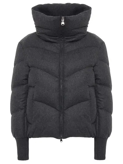 -Серый короткий стеганый пуховик из смесового кашемира от HETREGO.