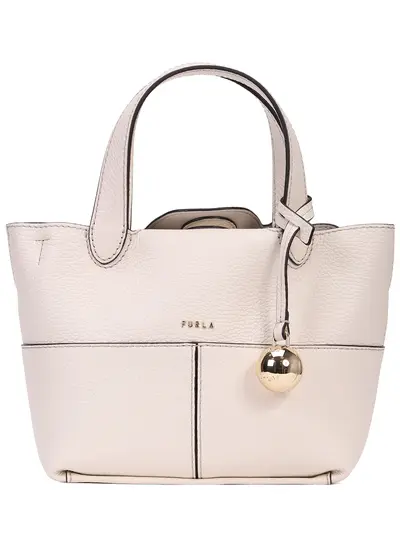 -Мини-тоут с двойными верхними ручками для носки, съемным регулируемым ремнем на плечо, логотипом Furla спереди, подвеской в форме сферы, узким клапаном на магните сверху.