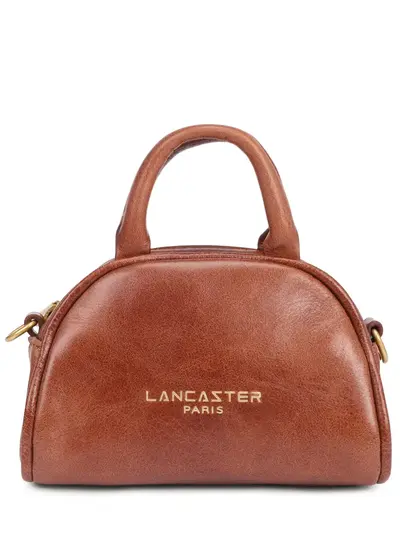 -Коричневая сумка из кожи с эффектом кракелюра от LANCASTER. -Миниатюрная формоустойчивая модель с двойными верхними ручками, съемной цепочкой на плечо или для носки как кросс-боди, застежкой на молнию, логотипом бренда спереди.
