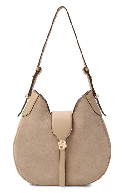 Сумку Beyond из замши и яловой кожи дополнили внешним и двумя внутренними карманами. Клапан модели с регулируемым плечевым ремнем украсили металлической монограммой Double B.