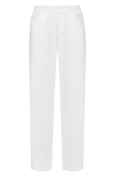 Прямые джинсы выполнили из хлопка с добавлением эластана. Модель с широким эластичным поясом, делающим изделие подходящим для беременных, украсили брендированным ярлыком на одном из пяти карманов.