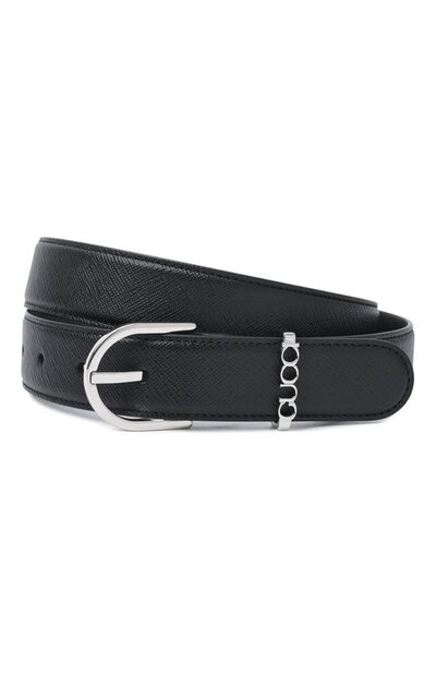 Ремень из сафьяновой кожи дополнили скользящей металлической шлевкой с трехмерным логотипом. Аксессуар средней ширины застегивается овальной пряжкой.