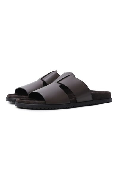 Союзку шлепанцев DG Casual выполнили из телячьей кожи, а формованную стельку обтянули замшей. Пару с тисненым логотипом сбоку установили на рифленую подошву из EVA.