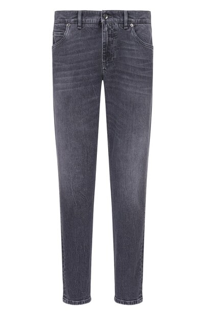 Джинсы с декоративными заломами выполнили из хлопкового денима с добавлением эластана. Самый маленький из пяти карманов дополнили брендированным патчем, а задний украсили геральдической вышивкой.