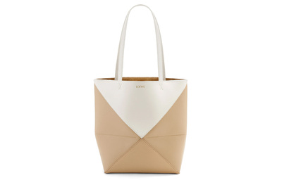 Блестящая кожаная сумка-шоппер из телячьей кожи, повседневная женская мягкая белая с бумажным декором Loewe a779g50x18-8487 (lpn31229080)