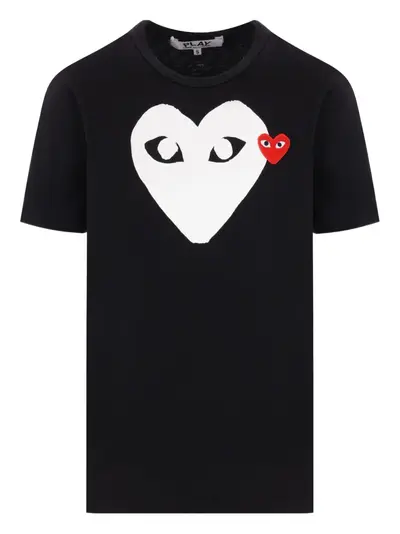 Black cotton logo print T-shirt from Comme Des Garçons Play featuring a crew neck, short sleeves, a straight hem and a slim fit.