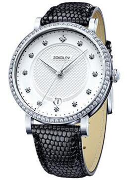 Кварцевые часы. Механизм Ronda калибр 715. Корпус из серебра 925, покрыт родием, инкрустирован фианитами 64 шт. Переводная головка из нержавеющей стали с лунным камнем диаметром 3,5 мм. Гильошированный белый циферблат с центральной секундной стрелкой и фианитами в виде меток. Минеральное стекло с сапфировым напылением. Кожаный ремешок черного цвета с фактурой под ящерицу шириной 18 мм у основания, 16 мм - у застежки. Размер 37х8.1мм. Индикация даты.