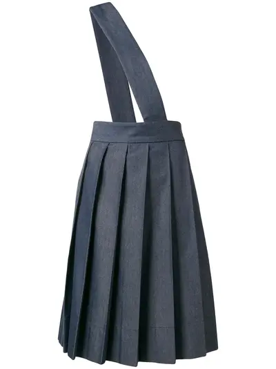 Indigo 1997 asymmetric braced skirt from Comme Des Garçons Pre-Owned featuring a high waist, a concealed side zip fastening and a pleated design. Please be mindful that this piece has led a previous life, and may tell its story through minor imperfection. Purchasing this item continues its narrative, so you can be confident that you’re making a POSITIVELY CONSCIOUS choice for the planet.