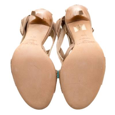 Classic python textured leather surface and stiletto heels make this pair of Jimmy Choos sandals a chic add on to the closet. A back zip design accompanied by gladiator style elasticated straps over the body bring forth a snug and comfortable wear for day long ensembles.