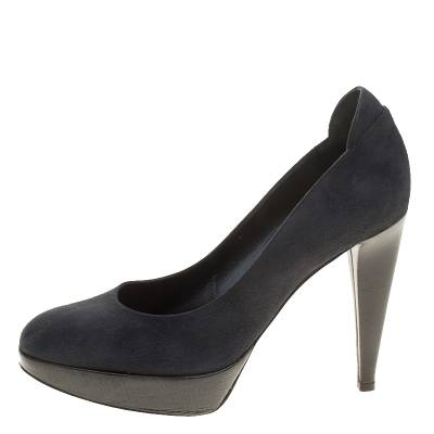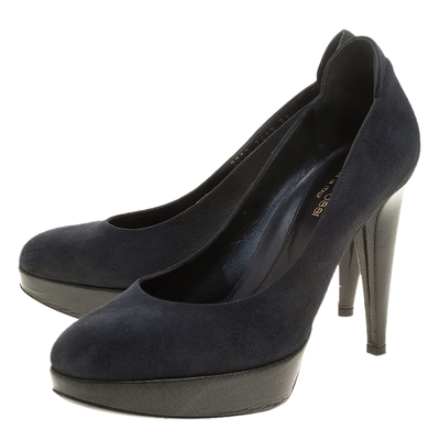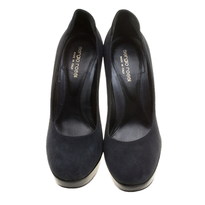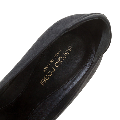 Have a fantastic day out with your friends while flaunting these fabulous grey pumps. Look merry and happy in this exquisite pair made from suede. Unlock the perfect look by coordinating your outfit with this pair of leather lined Sergio Rossi pumps.