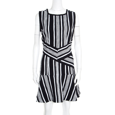 The smart and practical appeal of this sleeveless dress from Carven makes it a pleasant choice for your evening looks. It is graced with a fabulous silhouette featuring a monochrome striped pattern all over along with a cutout at the rear. Complete with a frilled hem, this dress can be styled with complementing sandals to complete the look.