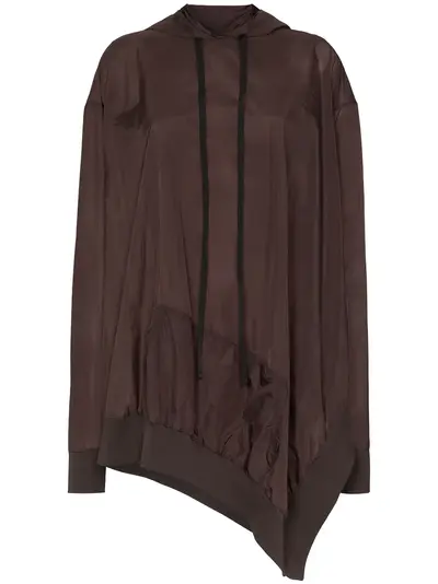 L.A.-based brand Unravel creates deconstructed streetwear for the rebel that exists within. Their goal is to ultimately ‘re-do the classics’. Made from stretch cotton, this brown asymmetric open side hoodie from Unravel features a drawstring hood, dropped shoulders, long sleeves with cut-out arm holes, a central pouch pocket, an asymmetric hem, an elasticated hem and cuffs and a translucent design.