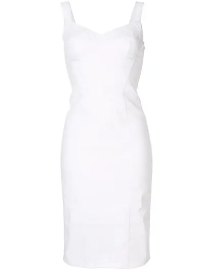 Heritage tulle and lace have become an intrinsic part of Dolce & Gabbana's exuberantly romantic, feminine collections. This optical white corset bustier dress features shoulder straps, a sweetheart neckline, a fitted silhouette, a knee length and a rear zip and hook-and-eye fastening.